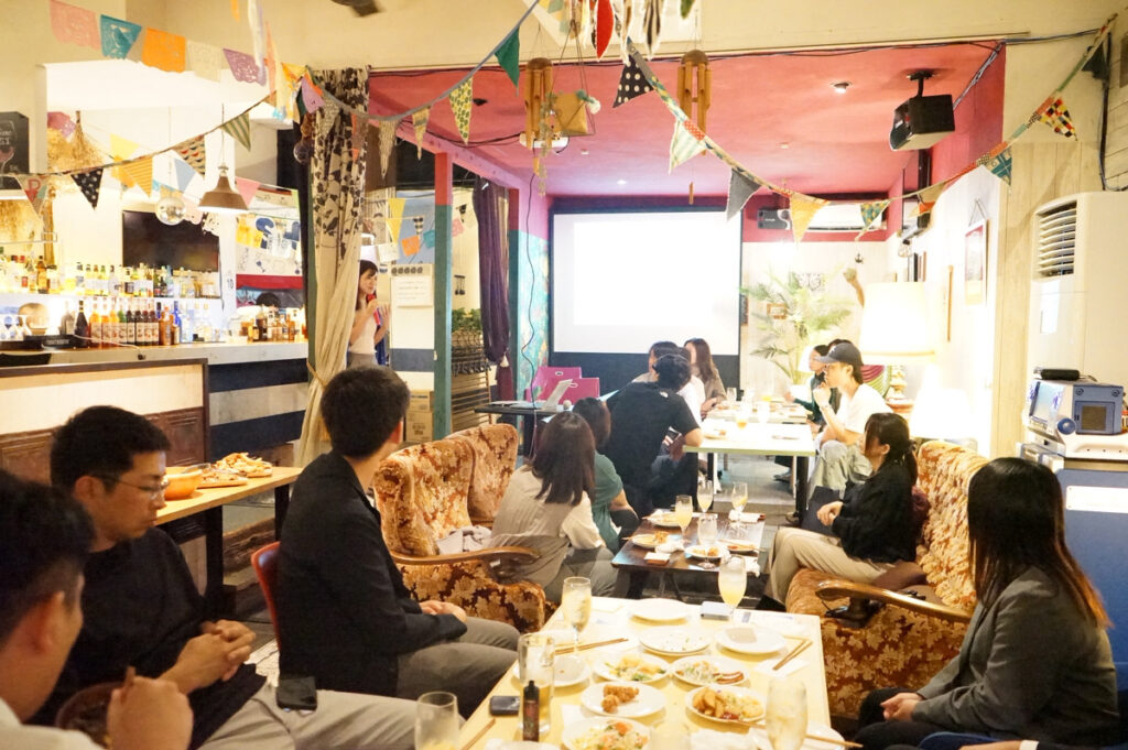 異なる業種の人たちが交わり、新しい発見や刺激がたくさん!!⚡️ 一人ひとりの自己紹介タイムを設け、お話ししたい内容をその場でスクリーンに映しながらシェアしました✨