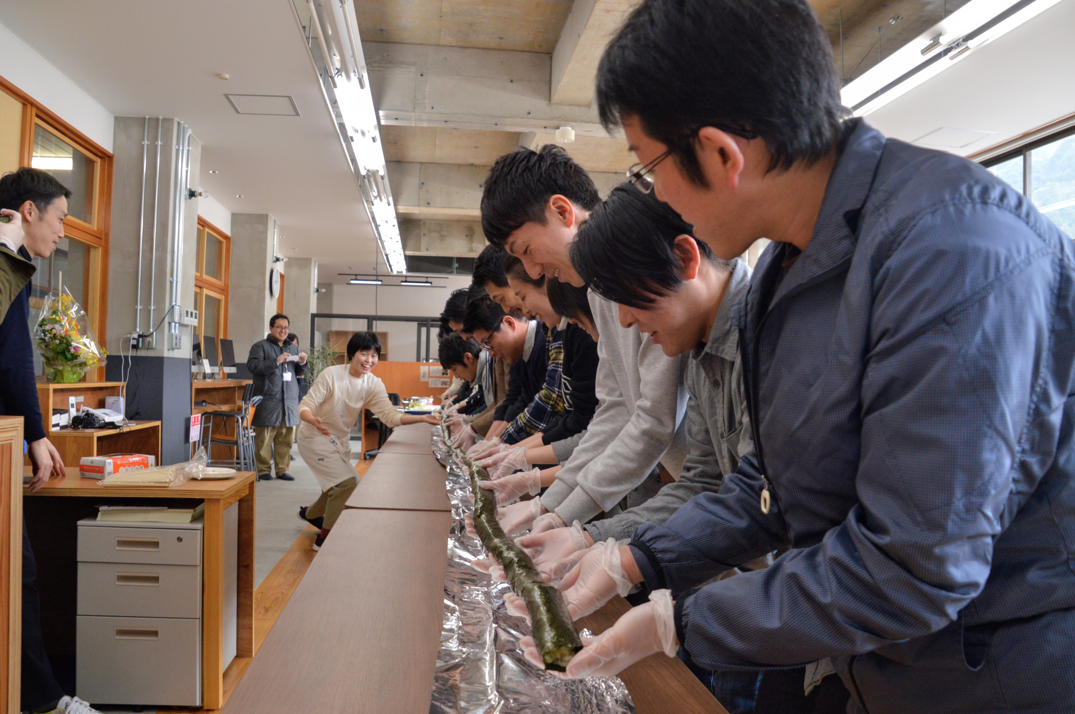 3年前までは、このような感じでみんなで恵方巻き作りが隼Lab.の節分イベント恒例行事になっていました。