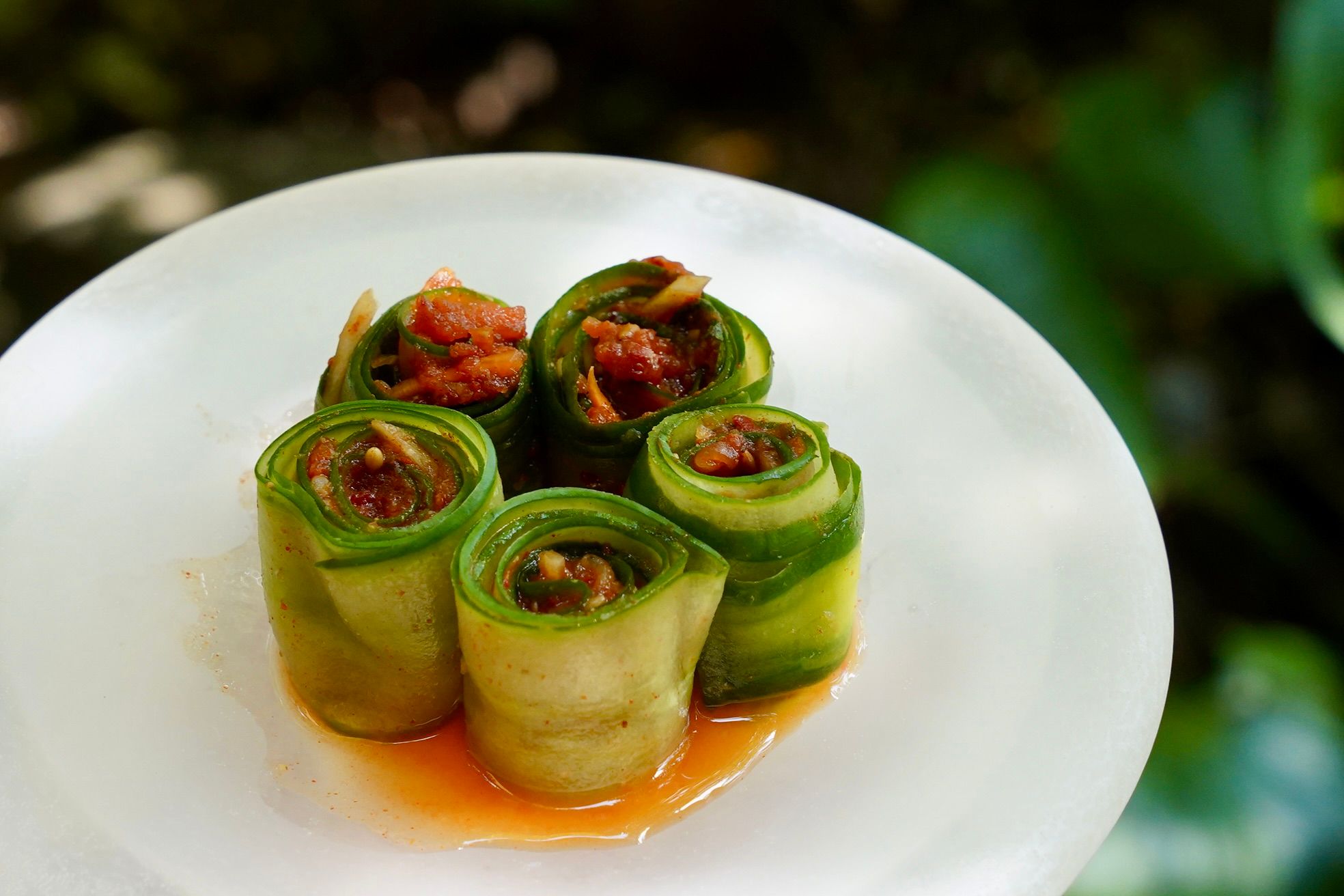 ご自身で仕込んだヤンニョムとキムチ(きゅうり)