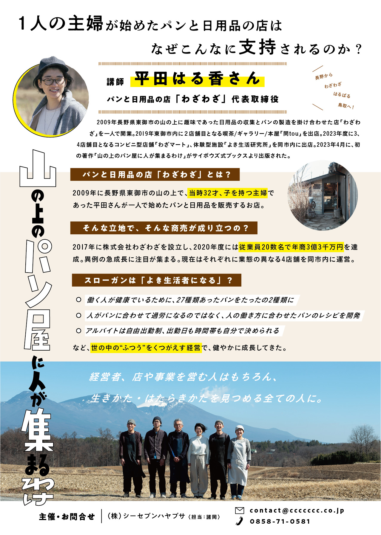 平田さんのお話から常識を軽やかに覆すわざわざの経営のあり方や、その芯をなす独自の思考を知ることで、経営者の方やお店・事業の運営に取り組んでいる方はもちろん、これから何か一歩を始めたいと考えている方、”働く”という側面だけではなく”生き方”として刺激を求めている方にとっても大切なヒントが得られるはずです。