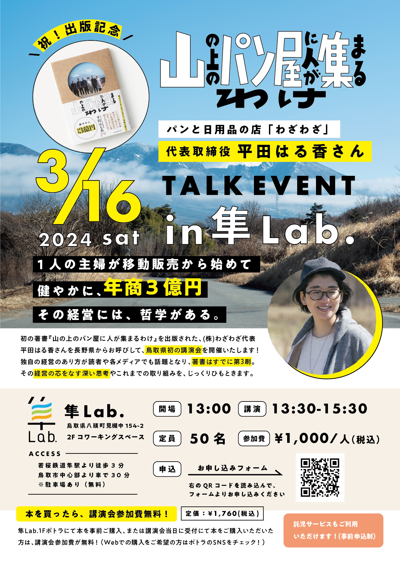 3/16(土)開催!パンと日用品の店〈わざわざ〉代表・平田はる香さん講演会@隼Lab.