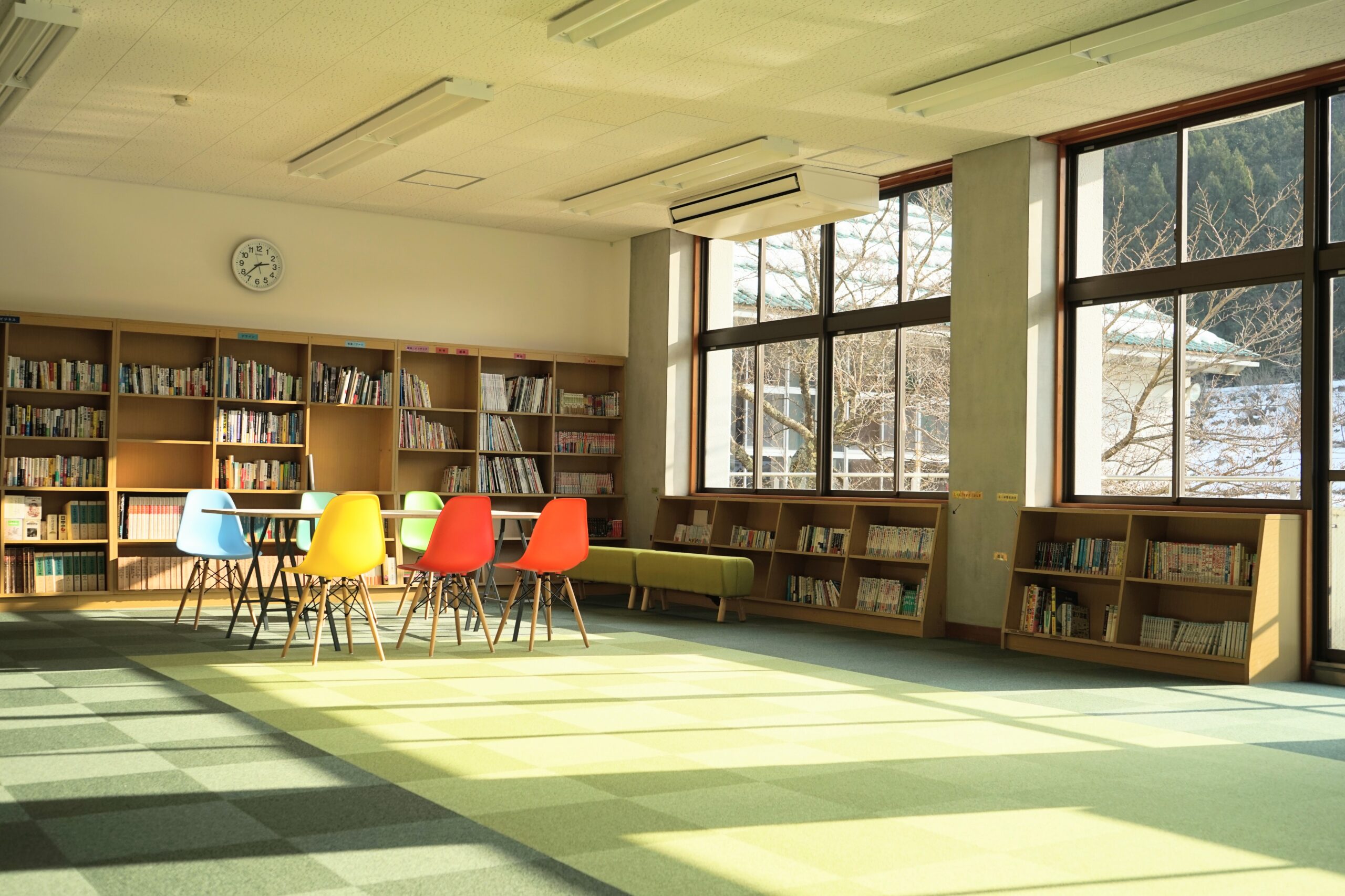 リラックスした雰囲気で使えるライブラリーは、コミュニケーションの場に最適です。