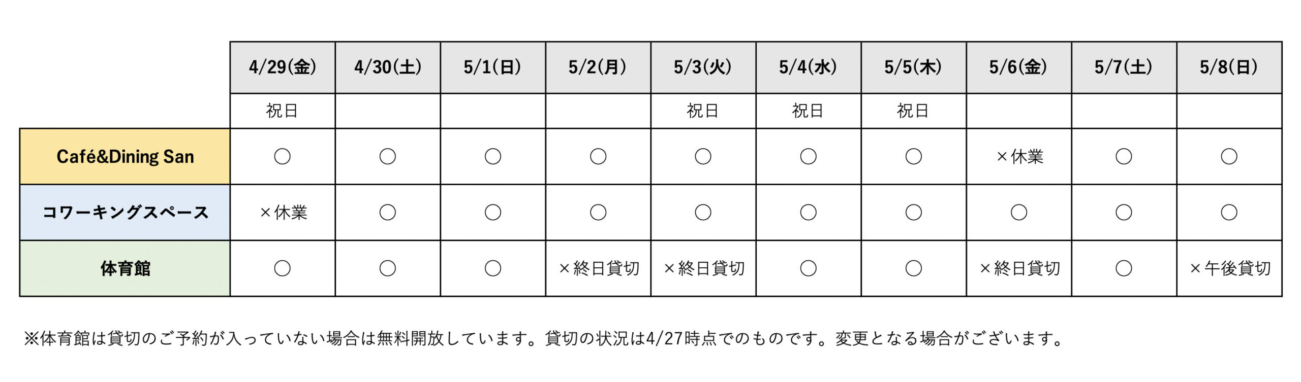 ゴールデンウィーク期間中の営業については、通常と異なる点もございます。