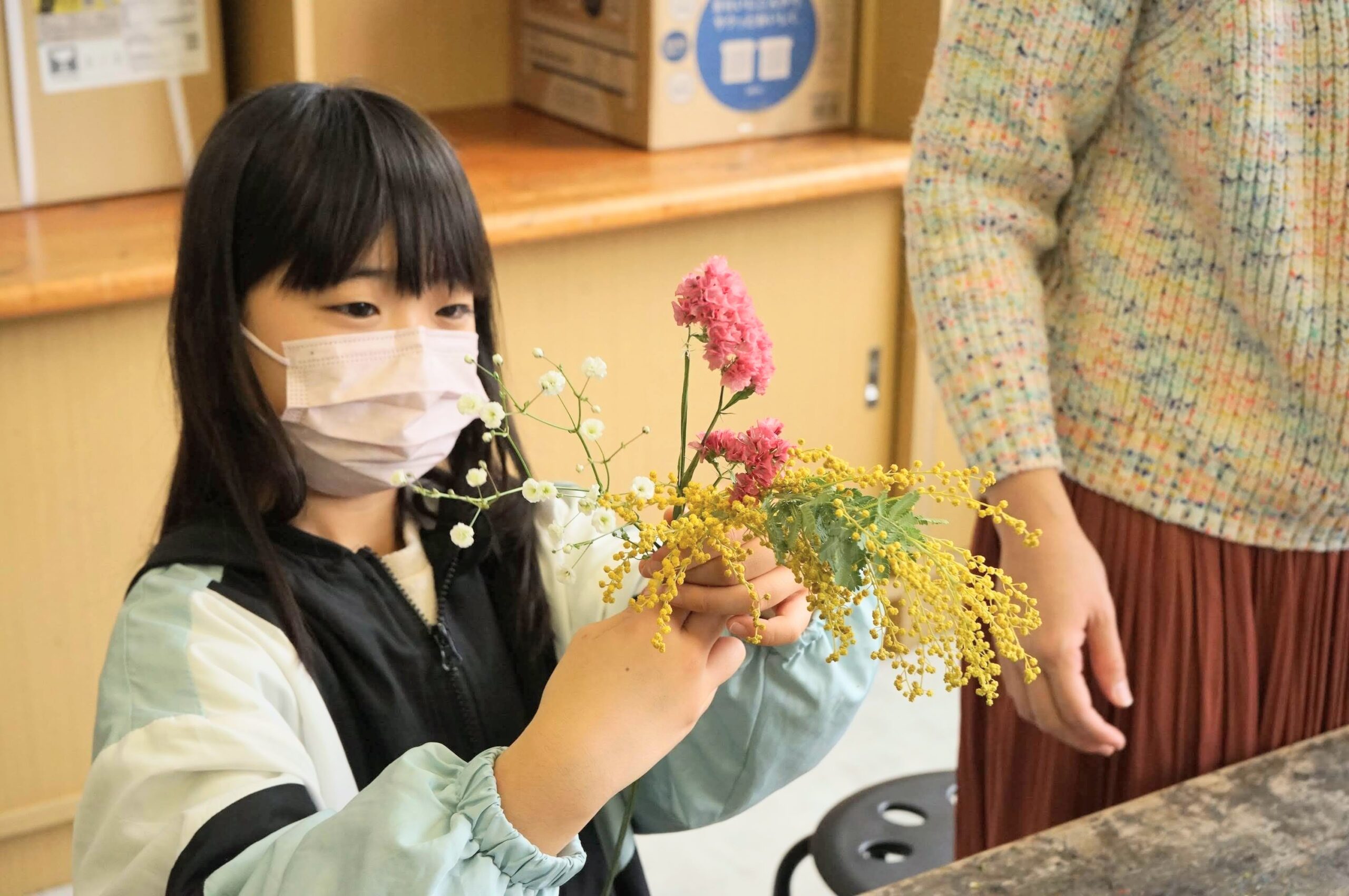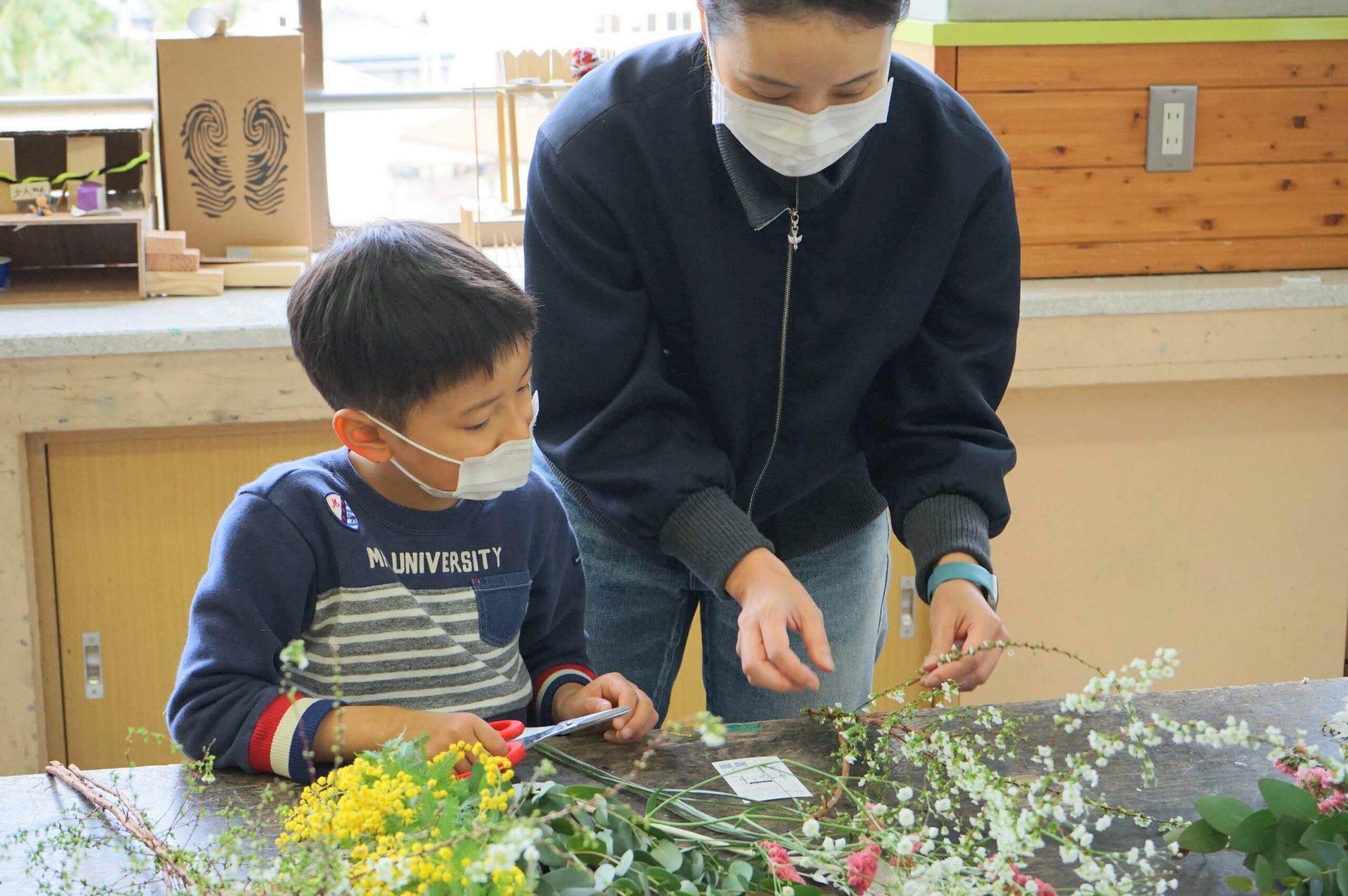 「自分のお部屋に飾る!」と、自分のミニスワッグを一生懸命つくる姿に心がほっこりとしました。