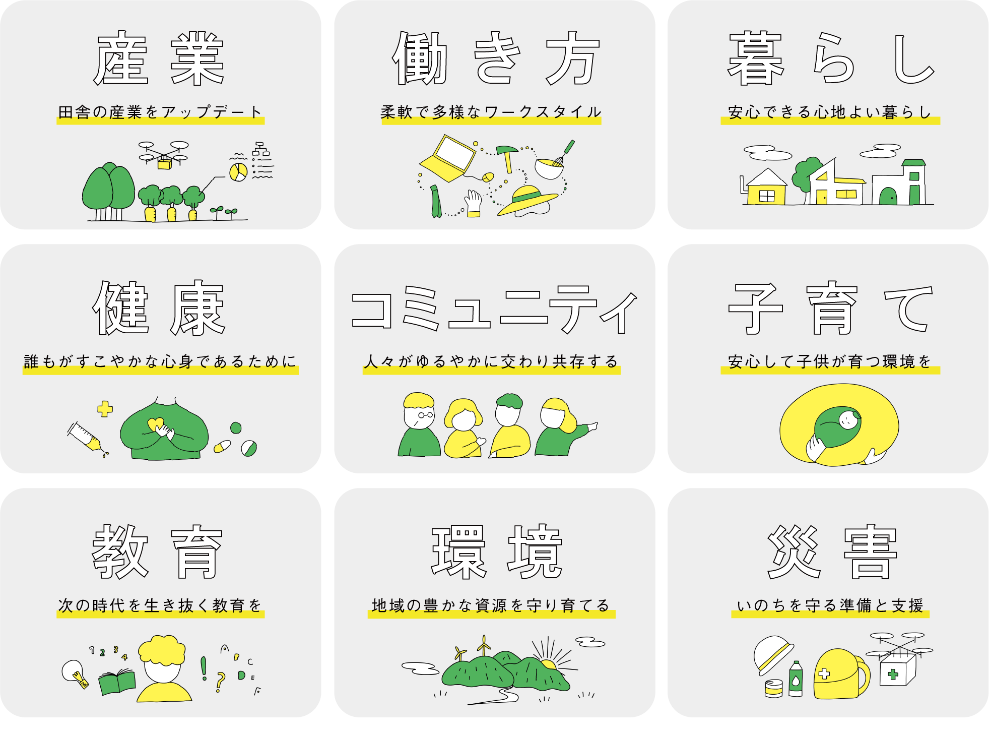 それぞれ、企業が持つアイデアやテクノロジーを、地域の課題、地域を支えるコミュニティと掛け合わせ、持続可能な未 来の田舎づくりに向けたプロジェクトに取り組みます。