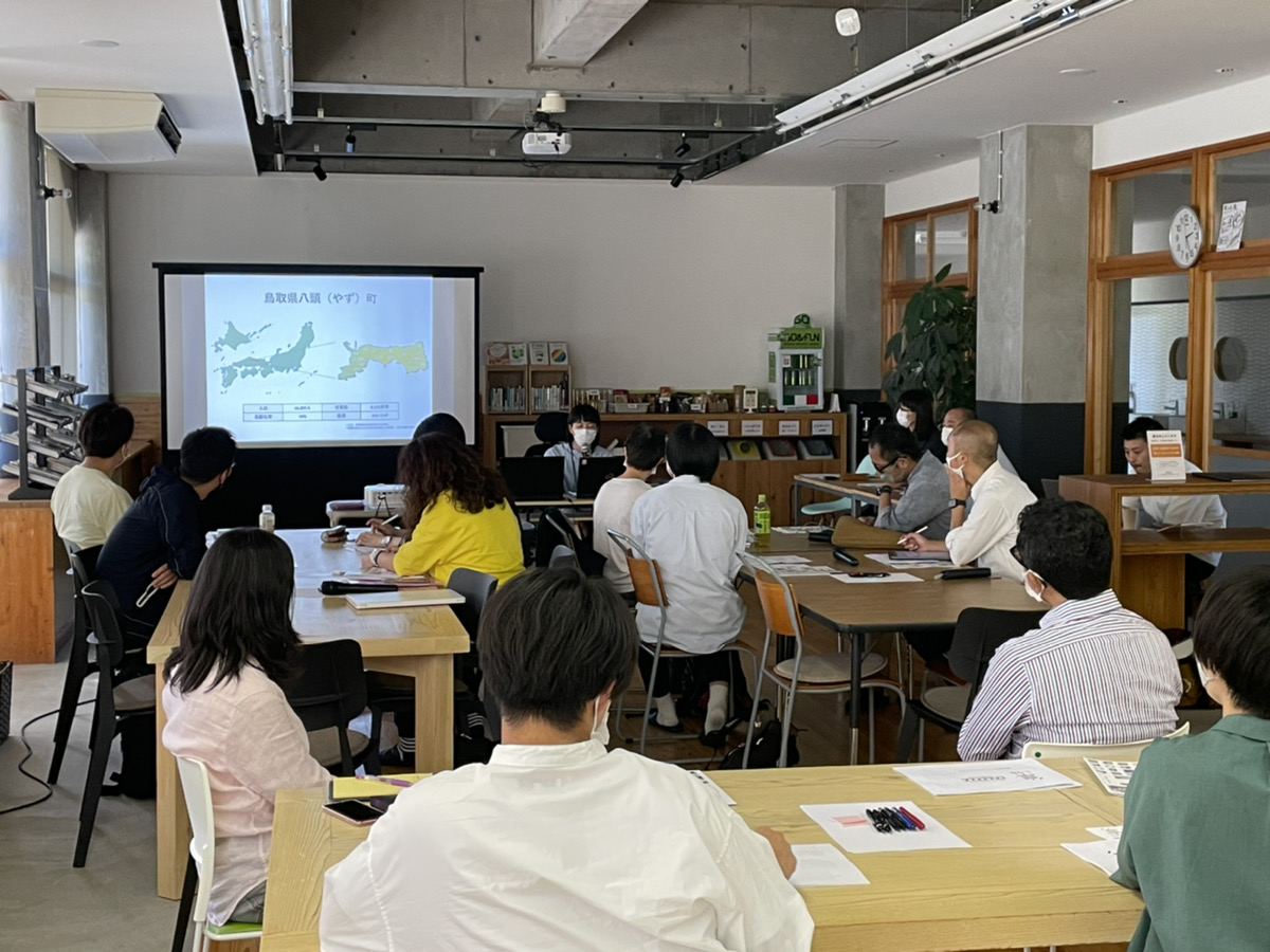 今回のツアーでは弊社代表古田、八頭町職員より、それぞれの立場からこれまでの歩みや今後の展望をお話ししたほか、株式会社コプラス様と一緒になって八頭町の課題解決を考えるワークショップを開催しました。